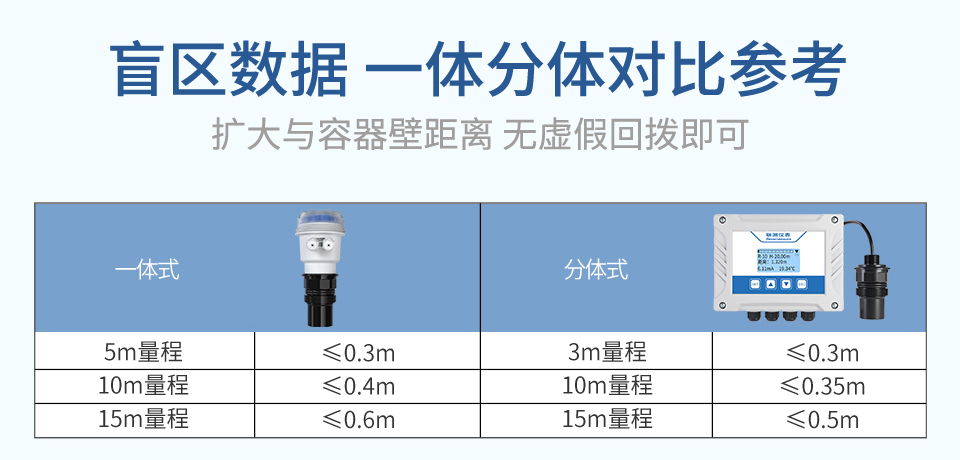 准确度: ±0.3%FS测量范围: (0~5)m、(0~10)m 、(0~15)m(可选)盲区 :分体式≤0.3m(5m)、 ≤0.35m(10m)、 ≤0.5m(15m)