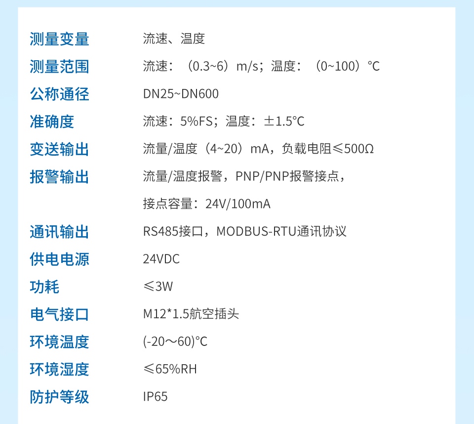 测量范围:流速(0.3~6)m/s、温度(0~100)℃