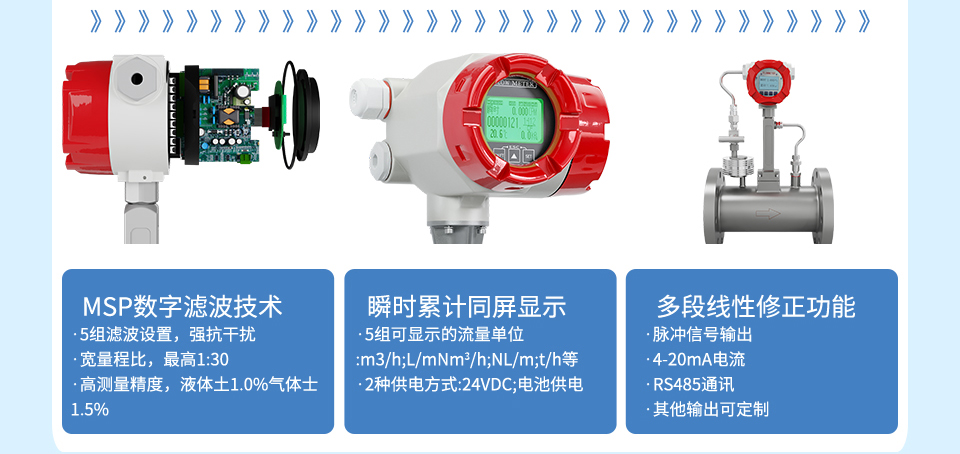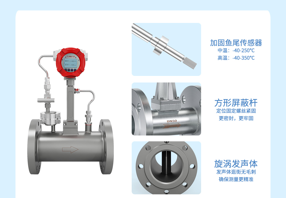 产品特点:高精度,多场合可用,蒸汽流量首选,便于维护