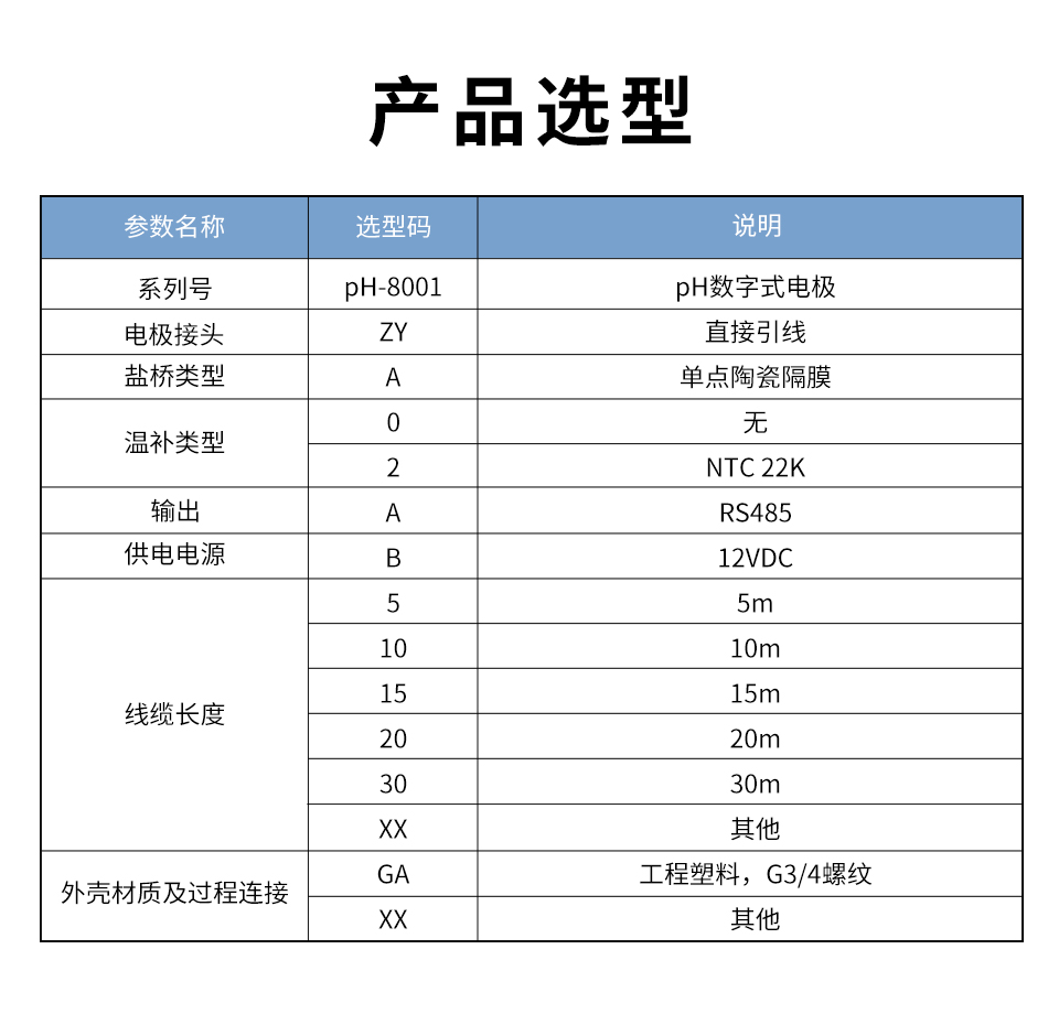 本产品是我司针对养殖行业设计的 pH 数字传感器,带数字接口(RS485*1),可用于测量量程范围内水溶液体系中pH 值的变化情况,其带有标准 RS485 Modbus RTU 协议接口功能,可以与上位机进行远程通讯。