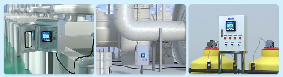 pH 电极测量原理为电化学法,原电池原理。原电池是一个系统,它的作用是使化学能量转成为电能。此电池的电压被称为电动势(EMF)。此电动势(EMF)由二个半电池构成。其中一个半电池称作测量电池,它的电位与特定的离子活度有关;另一个半电池为参比半电池,通常称作参比电极,它一般是与测量溶液相通,并且与测量仪表相连。通过电极内部原电池反应产生的电势差,传递到 pH 控制器,对应算法变送显示 pH 值。