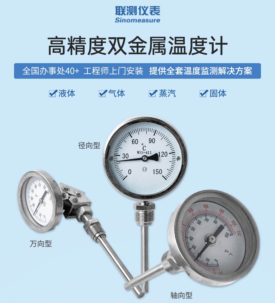 杭州联测仪表专业生产不锈钢径向、轴向、万向工业用双金属温度计可用于窑炉、烤箱、管道,测量气体、液体、蒸汽的温度;咨询热线:400-185-1718
