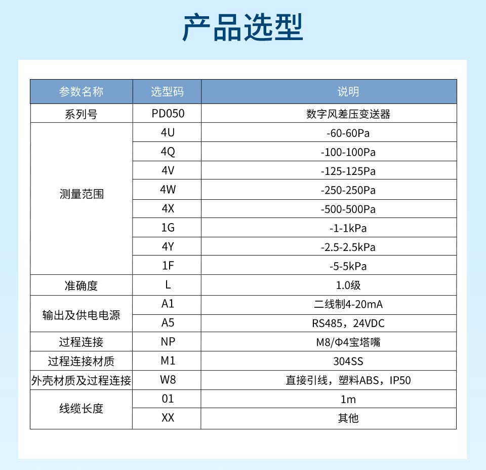 数字风差压变送器采用原装进口差压传感器做为感压元件,配合超低功耗数字调理电路,使其具有精度高、长期稳定性好等特点。与机械差压计相同的安装方式,便于工程人员现场安装调试。该系列数字风差压表可用于洁净室、手术室、无尘室、通风系统、 风机测试等对于高精度微差压的测量与控制。